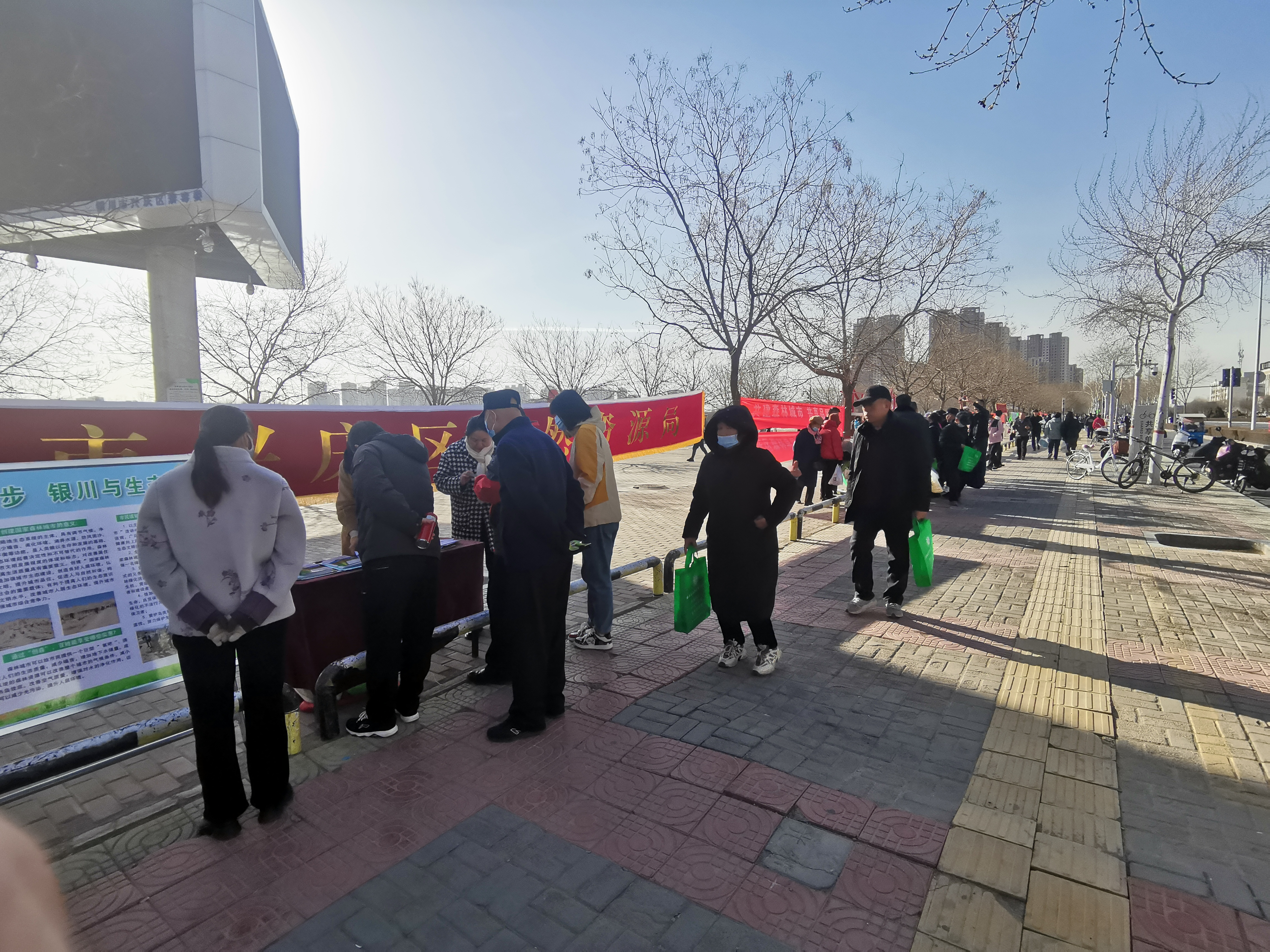 回大地,萬物復(fù)蘇,又一個“3.12全國植樹節(jié)”到來了。為全面落實自治區(qū)打好黃河“幾字彎”寧夏攻堅戰(zhàn)和銀川市“五八”強首府戰(zhàn)略部署要求,按照自治區(qū)綠委辦和首府綠委辦的統(tǒng)一安排,3月12日上午,興慶區(qū)設(shè)置主宣傳點:麗景湖公園廣場;次宣傳點:掌政農(nóng)貿(mào)市場、大新鎮(zhèn)新安家園小區(qū)廣場、通貴鄉(xiāng)新時代文明廣場,月牙湖鄉(xiāng)濱河家園二村廣場。組織開展“3.12全國植樹節(jié)”宣傳活動。興慶區(qū)12個街道辦事處、4個鄉(xiāng)鎮(zhèn)、興慶區(qū)物業(yè)辦、興慶區(qū)自然資源局、轄區(qū)49區(qū)企事業(yè)單位、物業(yè)公司參加,通過發(fā)放宣傳材料、懸掛標(biāo)語橫幅、擺放展板、現(xiàn)場咨詢解答等多種形式開展國土綠化宣傳活動。本次活動參加宣傳工作人員100余人、制作展板80余塊、懸掛橫幅140余幅,發(fā)放宣傳資料6000余份。